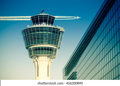 航空機と管制塔とが無線で通信しているのを